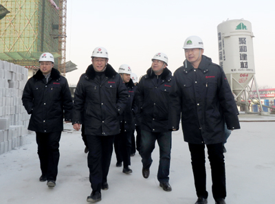 2013年12月31日上午,集團公司常務副總裁孔超在工程部、技術部、五公司等相關部門和人員的陪同下,在五公司古現項目現場觀摩了我公司機械噴涂抹灰試驗。
