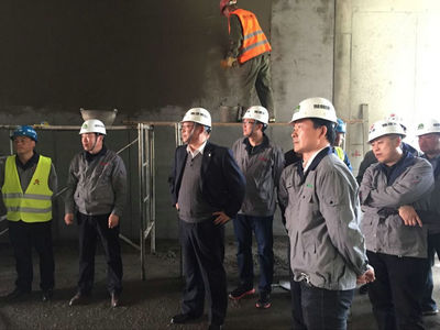 2017年4月15日上午,聚和建材與五公司祥隆綠城項目部聯合舉辦了機械噴涂抹灰展示會。集團公司常務副總裁孔超、工程管理部部長于學功及各土建公司分管生產的副總經理、工程處長及部分項目經理蒞臨現場指導工作。聚和建材總經理馬現來、五公司祥隆綠城項目經理閆文國現場陪同。聚和建材抹灰項目組人員對相關工藝進行了細致講解。