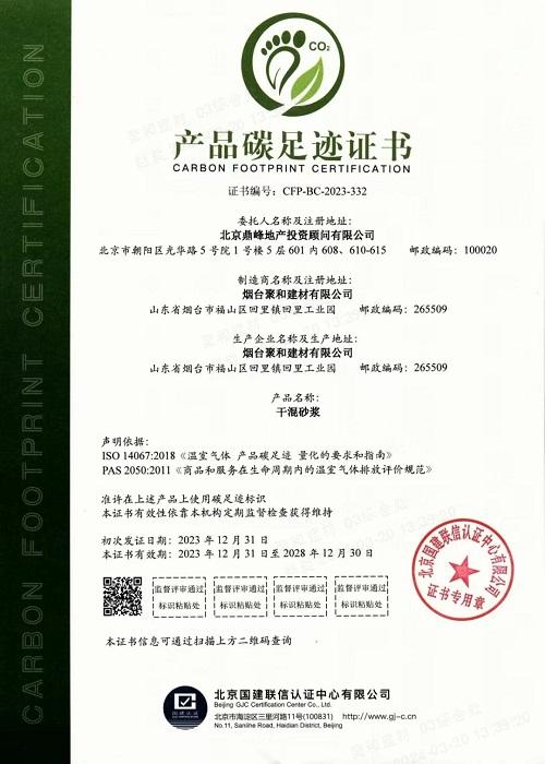 聚和建材取得“產(chǎn)品碳足跡”認證證書